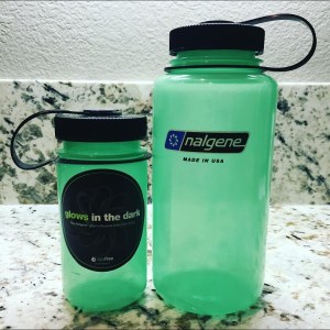 The OG wide mouth: perfect for adding ice, checking for floaties, and easy cleaning. While these water bottles come in a variety of colors, the GLOW IN THE DARK factor takes this particular one to the next level! Glows a super vibrant classic green after being exposed to UV (black light) or sunlight for only a few minutes. Even above average glow when in contacted with regular house lighting. Durable BPA free design that makes it suitable for warm or cold drinks. Measurements are marked in both ounces and milliliters that are molded into the plastic, not painted on. Dishwasher safe (top shelf), leak proof grip seal, perfect to clip on almost anything with a carabiner, and relatively indestructible. I have owned many, and only managed to brake one! (How Weird 2019). *Also available in an adorable 12oz mini version…perfect for a mixed drink on the go, or small children!